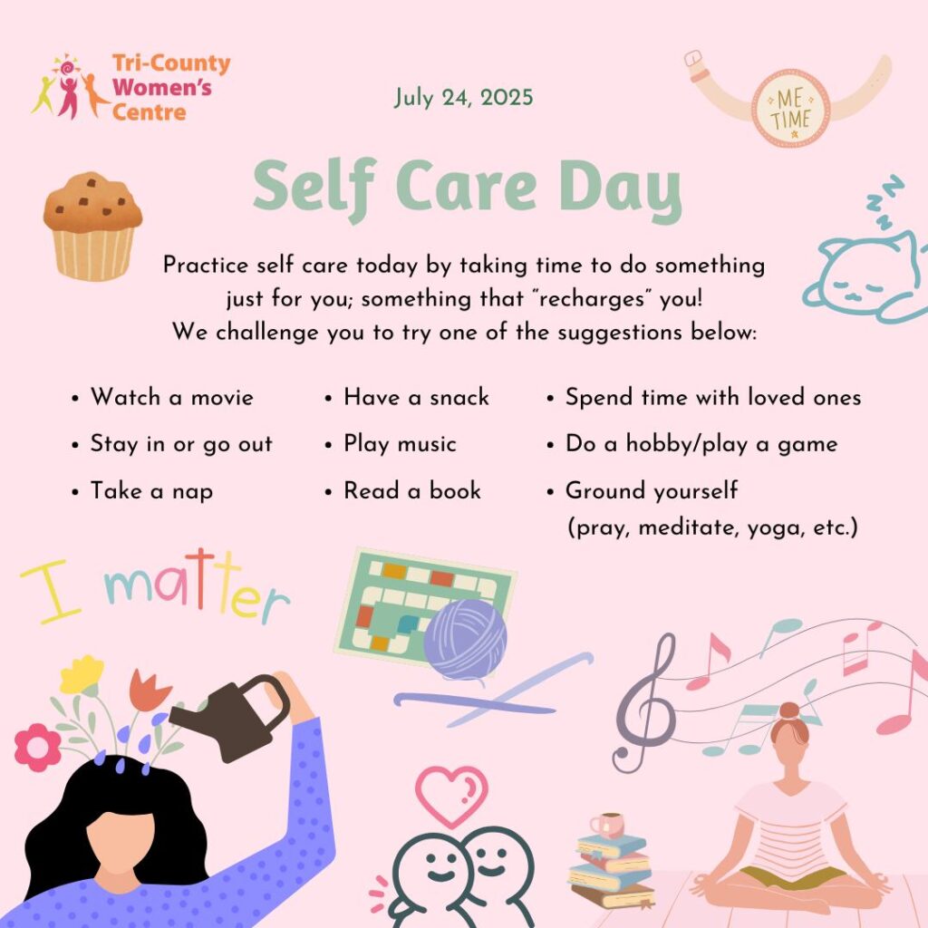 Practice self care today by taking time to do something just for you; something that “recharges” you!