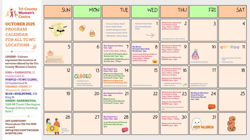 YARMOUTH CONTACT INFO: 902-742-0085 or info@tricountywomenscentre.org