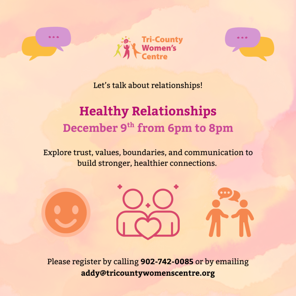 Our Healthy Relationships program takes place TODAY, December 9th, from 6pm to 8pm!