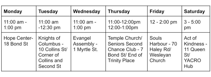 Community Cook Ups, formerly the 100 Meals Program, provides free meals to the community six days a week and is sponsored by the Yarmouth Collaborative Food Network, Parents’ Place, and Acts of Kindness.