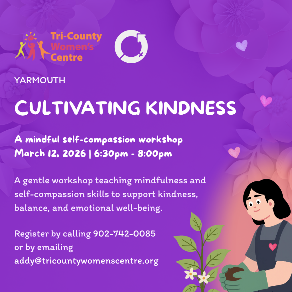 Register today by calling 902-742-0085 or by emailing addy@tricountywomenscentre.org